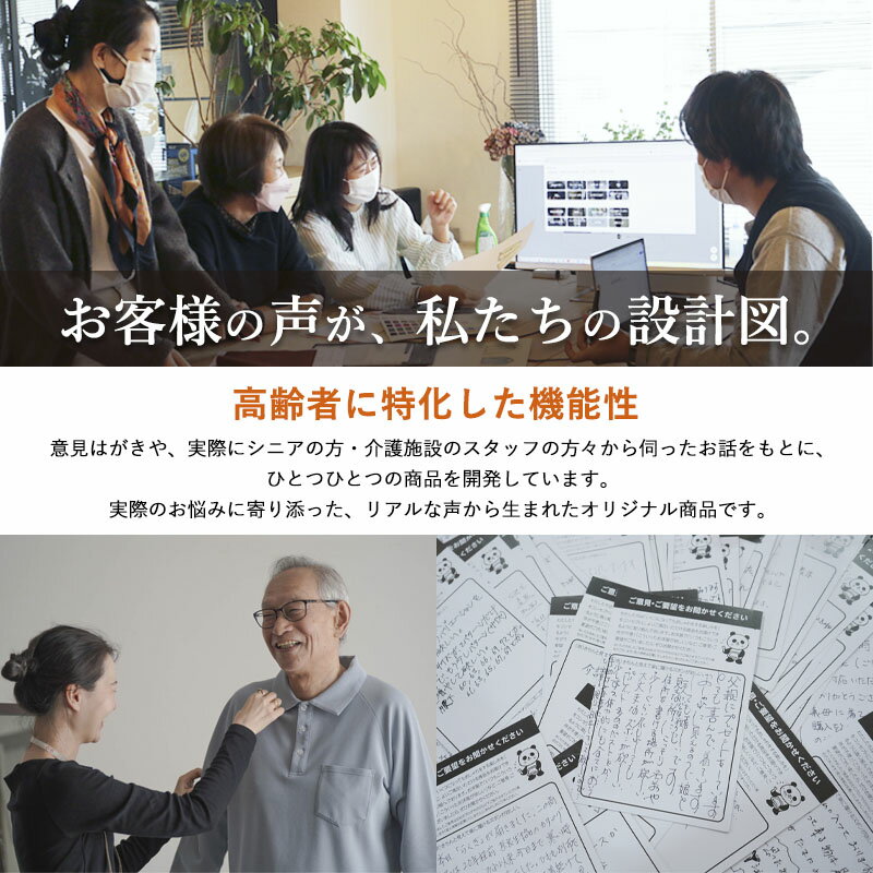 商品詳細秋冬仕様の前開き裏起毛長袖ボーダー柄ポロ。裏起毛がほんのり暖かく柔らかいので着心地抜群。日常使いにもぴったりです。●しっかりした襟元で、アイロンが不要。いつでもキチンとした印象を保てます。●程よい厚みの裏起毛生地なので1枚で着用してもあたたかさを実感頂けます。洗濯機と乾燥機に対応し、日々のお手入れが簡単。●ラグラン袖で肩周りの動きやすさを確保。特に腕が上がりにくい方にも快適にご利用いただけるデザインです。●メンズはS・M・Lのサイズ展開。小柄な方にもフィットするSサイズをご用意しています。●斜めボタンホールなのでボタンの留め外しが苦手な方でもお着替えしやすい仕様。名前が書けるタグ付いており、介護施設でも好評頂いている設計です。●襟と身頃が同じ生地で仕上げられており、洗練された見た目。袖口がリブでないので引っ掛かりにくく、脇スリットがお腹周りをスッキリ見せます。(素材)ポリエステル85% 綿15%(サイズ展開)S・M・L(カラー展開)ネイビー・グレー(生産国)中国製70代80代の方のためのおしゃれなシニアファッション(ハイミセス向け)の洋服を多数取り揃えています。高齢になると体型の変化で今まで着ていたお洋服のサイズが変わったり、着替えがしにくくなったりと「洋服を着る」「お洒落を楽しむ」にもちょっとした不便なことも多くなります。シニアファッションを綺麗な着姿でおしゃれを楽しめるように、大きなサイズから小さなサイズまで取り揃えています。70代80代の方に向けたオリジナルシニアファッションブランド「ココわく」をはじめ、いくつになってもおしゃれを楽しみ元気でお出掛けしたくなるお洋服を提案してまいります。おしゃれをすると気分も明るくなりますね。着替える。身なりを整えるという日常の動作はお年寄りの寝たきり防止の為にも大切です。毎日おしゃれを楽しんでいつまでも元気なおじいちゃん、おばあちゃんが増えるように素敵な洋服をご紹介していきます。また、母の日・父の日・敬老の日やお誕生日祝い、還暦・喜寿・米寿・傘寿・白寿のお祝いの際にもプレゼントギフトラッピングをさせていただきますので是非ご利用くださいませ。