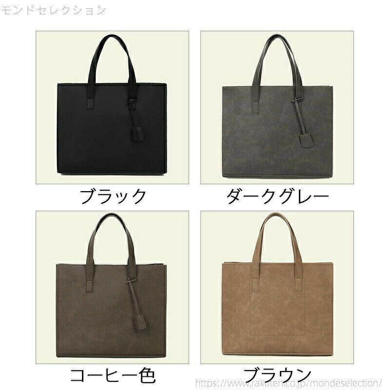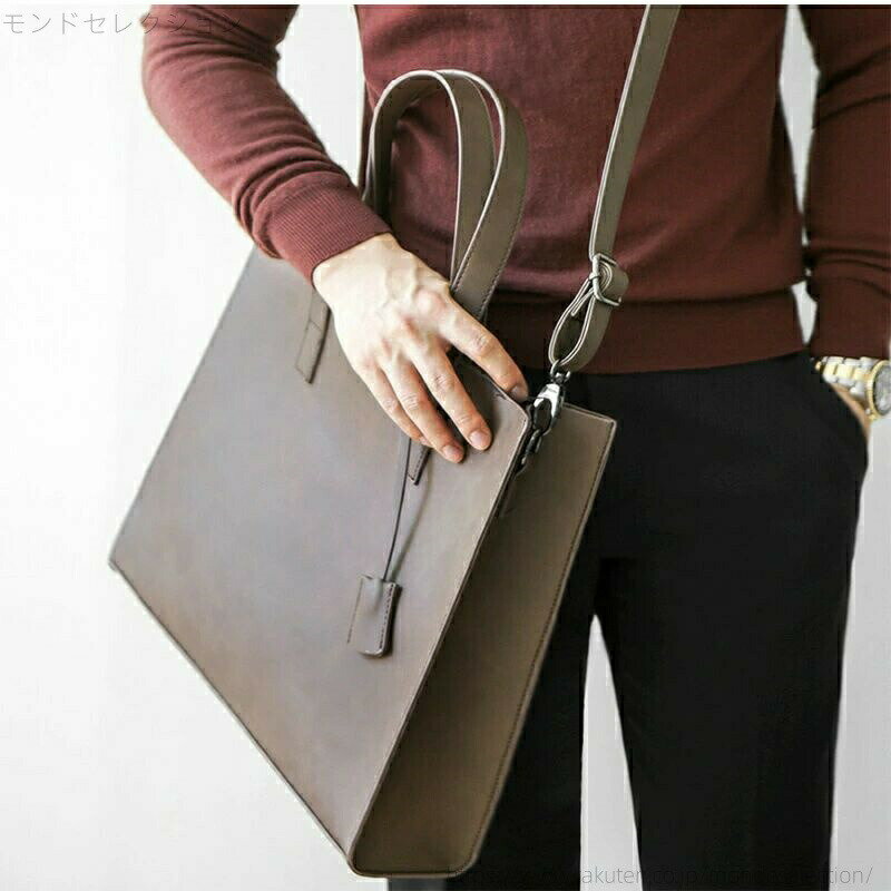 ビジネス&カジュアルを両立するトートバッグです。 収納力抜群はもちろん軽量と機能性も優秀です。 定番のデザインデイリーで大活躍するアイテムです。商品詳細 ※記載のないアクセサリー、小物等は付属しません ■サイズ:(cm)フリーサイズ:幅33cm×厚さ9cm×長さ40cm ■素材:PUなど ※備考 ●実寸はメジャー採寸の為、若干の誤差が生じる場合があります。 ●色合いはモニター環境により若干の誤差が出ます。 ●海外製品のため、詳細タグなし。 ●本製品は生産過程におきまして、生地を織る際の糸の継ぎ目や多少のほつれが生じることがありまが、品質上は問題ありません。