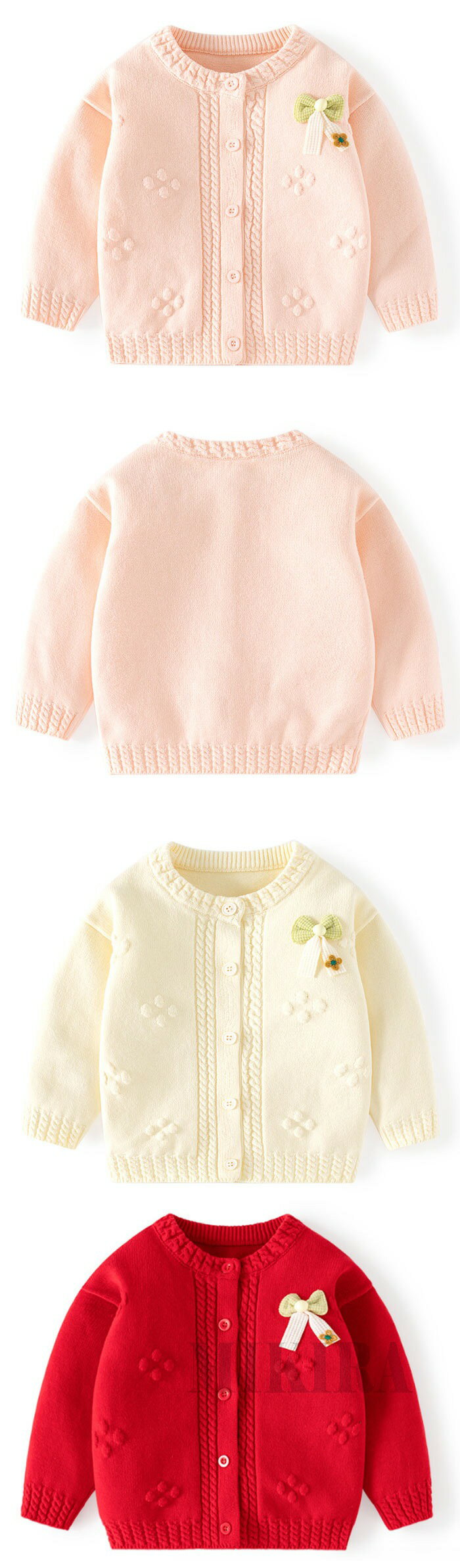 商品名可愛い ニットカーディガン ガールズ素材綿カラーピンク、ベージュ、レッドセット内容ニットカーディガン商品紹介 ☆柔らかな薄手のニット素材は、優しいタッチで素肌の上に直接羽織っても非常に気持ちが良いで、伸縮性に富んだ生地を使用して、肌触りの良いふんわりとしたカーディガンに仕上げました。 ☆一年中通して使っていただけるカーディガンです。シンプルなデザインなので飽きも来なく、コーディネイトもしやすいアイテムです。薄手のカーディガンが、春先にさらっと羽織れて、季節の変わり目に活躍します。注意事項 30度のぬるま湯に中性洗剤を薄めて優しく単品手洗いして下さい。 お客様のモニター環境により実物の色合いと若干お色目が異なる場合がございます。 商品生地、色合い、コサージュやその他装飾部品の色やデザイン等、生産時期によって、 差異が生じます。そのため、同じ商品を複数点ご購入の場合、場合によって色、コサージュ のデザイン等差異がでる場合がございます。ご了承ください。 着用保管頂きます際には他のものとの摩擦などにより色移りや傷になる場合が 御座いますのでご注意ください。