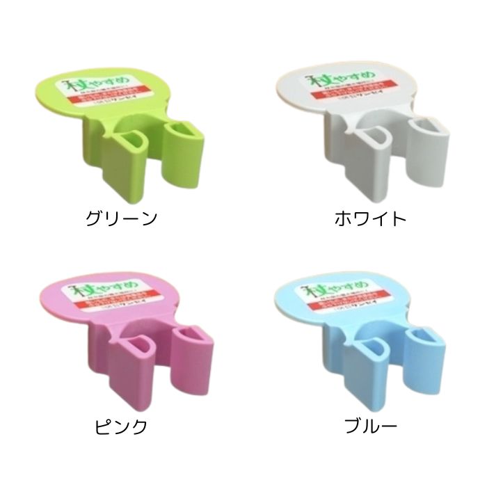 製品仕様 商品名 杖やすめ T型 素材 材質:エラストマー カラー・種類 ピンク/グリーン/ブルー/ホワイト ご注意事項 モニターの発色の具合によって実際のものと色が異なる場合がございます。ご了承ください。 その他商品説明 粘着シールでしっかり固定する杖ホルダーです。杖や傘をちょっと置きたい場所に、ホルダーがあれば倒れる心配がありません。
