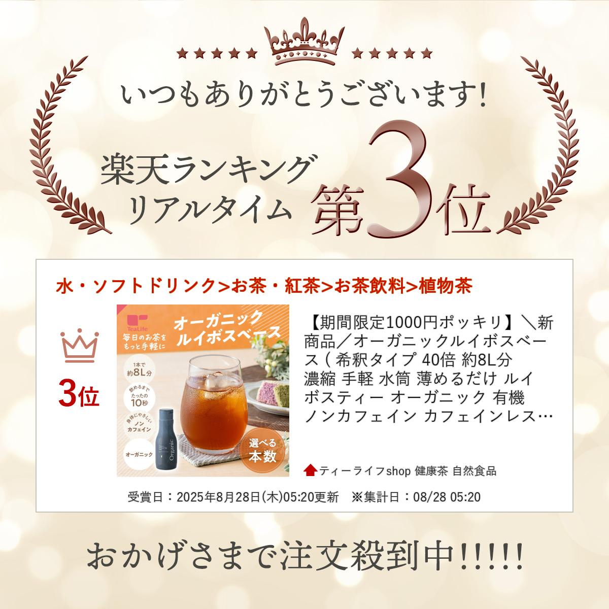 【最短当日出荷】オーガニックルイボス 濃縮液 約8L分 ( 秒でできる 希釈タイプ 40倍 約8L分 濃縮タイプ 手軽 水筒 薄めるだけ ベース ルイボスティー オーガニック 有機 ノンカフェイン カフェインレス ルイボス茶 紅茶 お茶 送料無料 ティーライフ ) 《ランキング受賞》