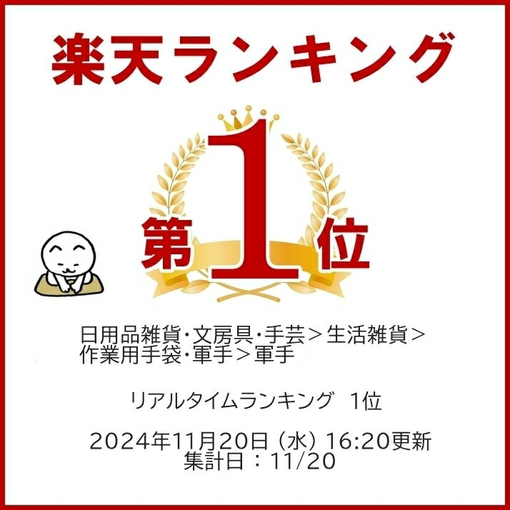 注文条件をご確認ください メール便指定で7組以上の数量超過注文の場合、楽天市場の指導に沿って、送料修正または最も送料の安い配送方法に変更のうえメールにてお知らせします。同意をいただいたご注文につき、そのまま発送となります。 愛媛県庁×楽天企画 愛媛県すごモノ商品に認定されました アニマルウェルフェア(動物福祉)の観点から生物由来の絹(シルク)は使用しておりません 仕 様 天然素材 綿100% (純綿コットン) ※ 肌荒れの原因となる伸縮糸(FTY)は使用していません すべり止め部分:塩化ビニール ※ 有害とされるフタル酸エステル系可塑剤は未使用です 指先をコーティング補強しています 手首部分にはアレルギーに配慮した国内大手ストッキングメーカーと同じ組成ゴム糸を採用 2本の糸で編み上げた通常のドライバー手袋の厚さです 日本製(国産) サ イ ズ 大人(男性用):約22.5cm (中指の先から手首までの長さ) 綿の性質上、サイズには若干の誤差があります 【男性用】はあくまで目安表記となります 数 量 ご注文数量【1】で1組(2枚)となります お 取 扱 い に つ い て 水〜ぬるま湯での手洗い、日陰吊干し推奨です 中性洗剤を使用してください 繊維・ゴムが傷むので洗濯機は使用しないでください 蛍光増白剤・漂白剤・乾燥機・アイロンは使用不可です 初回洗濯時には色物との洗濯はお避けください 濡れた状態の長時間放置はお避けください ウタマロ石鹸は蛍光増白剤を含む弱アルカリ性です。色落ち・変色・生地傷みの原因となりますので使用しないでください。 スマホ手袋ではございません(タッチパネル非対応) ミトンタイプではございません のびのび手袋ではございません ファッション手袋ではございません (軍手です) 防寒仕様ではございません 天然素材の特性上、綿花の収穫時期・製造ロットにより、肌触りや色合いが異なります ※まったく同じ品質は保証できかねます 保管衛生上、残糸は使用しておりません PC環境によって実物の色と異なって見える場合がございます 実店舗との共有在庫につき、ご注文商品が品切れの場合はご容赦くださいますようお願い申し上げます 手の大きさには個人差がございますのでサイズに関するご質問にはお答えできかねる場合がございます 各種企画により予告なく価格が変更になる場合がございます SDGsの観点から商品タグやリーフレット封入の省略、簡易包装とさせていただいております ギフトラッピングには対応しておりません インボイス対応ショップです てぶくろやさんの手袋はオールシーズン、オールマイティー♪ いちご狩り、おいも掘り、みかん狩り、焼き芋行事、七夕祭り、運動会(綱引き)、遠足、クリスマス会、餅つき大会、マラソン大会、節分、ダンス、お遊戯会、お誕生会、お別れ会、バーベキューBBQ、アウトドア、キャンプ、野外フェス、ウォーキング、ランニング、スポーツ、一輪車・自転車の練習、ガーデニング、畑作業、潮干狩り、野外活動、ボランティア活動、イベント、忘年会・新年会・カラオケ・かくし芸グッズ、お掃除グッズ(軍手雑巾/軍手ぞうきん)、販売促進グッズ、オーブンミトン、手芸素材、防災用品、防災グッズ、防寒、お祭り、HALLOWEEN(ハロウィン)、変装・仮装アイテム、コスプレ、ハイキング、登山、林間学校・臨海学校、野外活動、浴用手袋(バスミトン)、おやすみ手袋、お掃除手袋、通園、通学、入園式・卒園式・入学式・卒業式の記念グッズ、イベント行事の景品・粗品、住宅内覧会の指紋防止用、手袋シアター、日焼け紫外線UVカット、手指消毒手荒れのケア、怪我(ケガ)防止、非接触対策などに大活躍。その日の気分やラッキーカラーでもお選びいただけます。 検索キーワード 軍手、手袋、カラー軍手、カラー手袋、作業軍手、作業手袋、ぐんて、てぶくろ、すべり止め、スベリ止め、滑り止め、純綿、メンズ 関連キーワード 【スベリ止め】【グリップ】 **愛媛県庁×楽天企画 愛媛県すごモノ商品に認定されました 今治タオル生まれの肌にやさしいカラー軍手 自然派志向のあなたに、天然素材を。 てぶくろやさん カラー軍手のおすすめPOINT 安心安全の日本製です 【今治タオルの産地 愛媛県今治市で製造しています】 肌にやさしい天然素材 綿100%です 国際安全基準をクリアした染料のみを使っています アレルギー反応のない素材だけを使用しています アトピーや敏感肌の方にもおすすめです 静電気が起こらないので肌ストレスがありません 製造から梱包・発送にいたるまで、スタッフに喫煙者はいません 肌に直接ふれるものだから、「目に見えない品質」にもこだわります。 愛媛県高縄山系の花崗岩で濾過された 金属イオンをほとんど含まない天然の軟水。 この世界的にも珍しい天然水で染色された 天然素材綿100%の手袋は 肌トラブルの報告例がありません。 タオル生産量日本一の愛媛県今治市から 今治タオルとおなじ糸で編み上げた手袋を お届けします。 綿100%品質表示がある軍手・手袋の多く