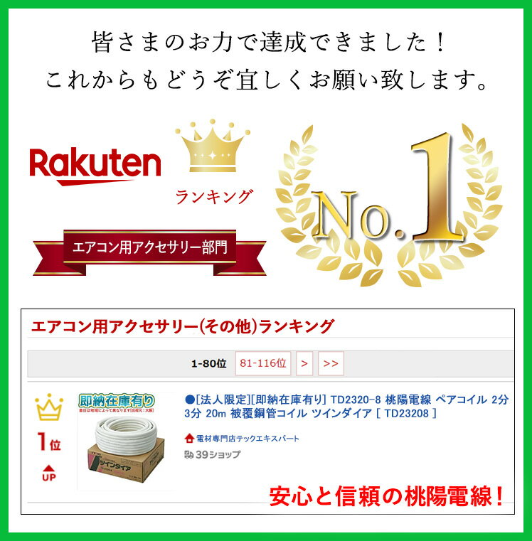 ●[法人限定][即納在庫有り] TD2320-8 桃陽電線 ペアコイル 2分3分 20m 被覆銅管コイル ツインダイア [ TD23208 ]