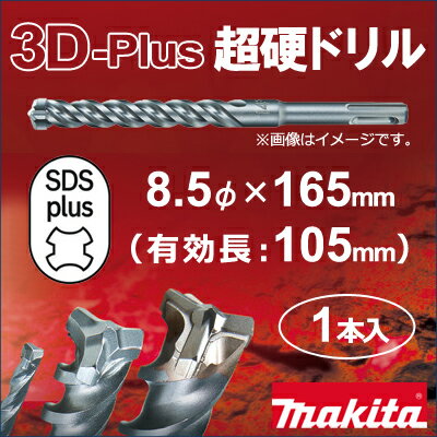 【ゆうパケットでの発送】 【マキタ makita】[A-54368]NEW 3Dプラス超硬ドリルビット(SDSプラスビット)8.5φ×165mm (有効長:105mm)【Made in Germany】3Dビット コンクリート内の鉄筋に強い独自の「立体」先端形状!