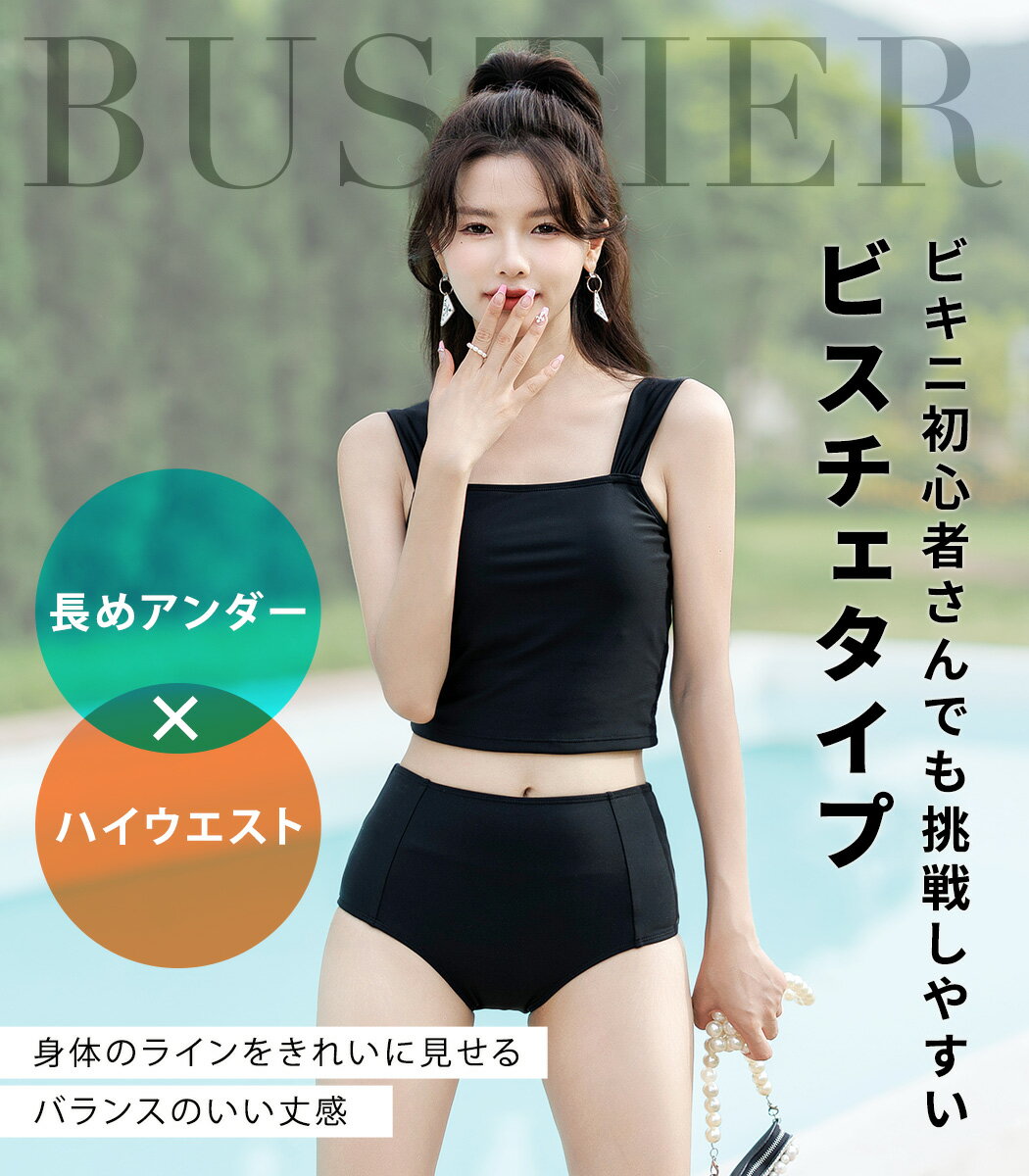 水着 タンキニ レディース 2点セット 大きいサイズ ビキニ セパレート ビスチェ風ブラ ブラトップ クロップド丈 肩紐 太い ノンワイヤー パッド付 バスト 盛れる ハイウエストショーツ ウエスト カバーアップ 30代 40代 ママ水着