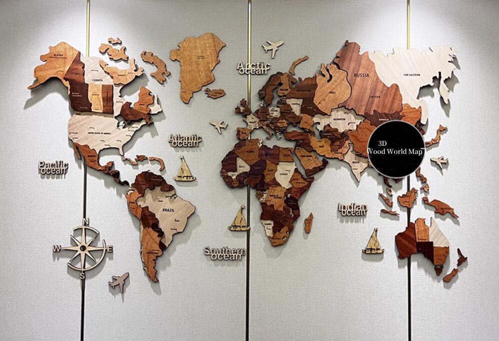 3D Wood World Map 世界地図 インテリア 木製 壁掛け 世界地図 インテリア 壁掛け オークカラー 高級感ある木の温もり 壁掛木製世界地図 インテリア&グローバルに!