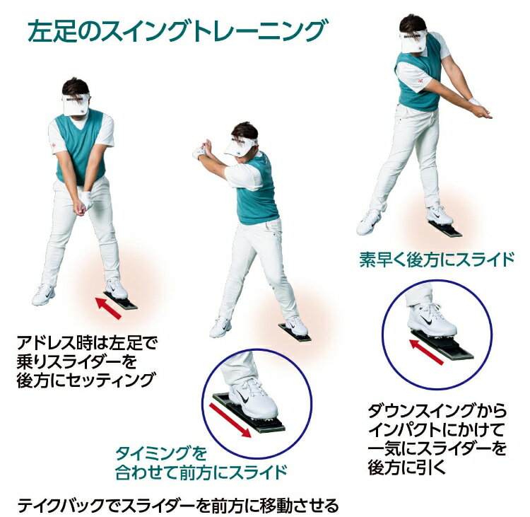 ■パワースライダー Power Slider ゴルフ スイング練習器具 ツアープロコーチ 吉田直樹考案 ゴルフスイング練習器具 足の動きを進化させるトレーニング器具 Power Slider Power Sliderは、飛距離アップに必要不可欠な足の裏と下半身の動きを鍛えるためのトレーニング器具。 瞬発的にパワーを発揮させるための動きを習得し、正しいフォームを身につけることで、飛距離を大幅に向上させることが可能です。 この革新的なトレーニング器具は、下半身の力を最大限に活かすために特別に設計されています。 使用することで、自分の体の動きを意識し、最適なフォームを自然に習得できます。 トレーニングを重ねるうちに、飛距離が向上し、理想的なスイングを実現できます。 また、腰や膝の動きを正確に調整することで、さらなる効果を実感する、安定したプレイを追求する方、飛距離を伸ばしたい方には特におすすめです。 Power Sliderを使うことで、体全体のバランスを整え、自信に満ちたパフォーマンスが可能に。 サイズ:本体:400mm×90mm×20mm 重 量:約875g 素 材:スチール・シリコンラバー ※モニターの環境により実物と色が異なって見える場合がございます、予めご了承ください。