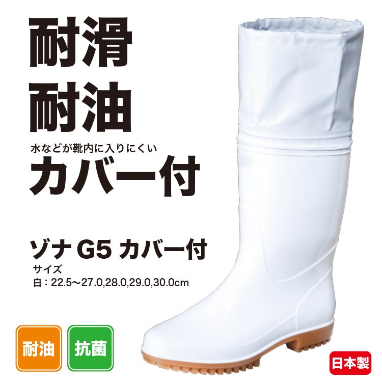 弘進ゴム ゾナ G5 耐油 カバー付き 白メンズ レディース 耐油 油に強い 抗菌 衛生長靴 レインブーツ 防水 日本製 厨房 食品 水産