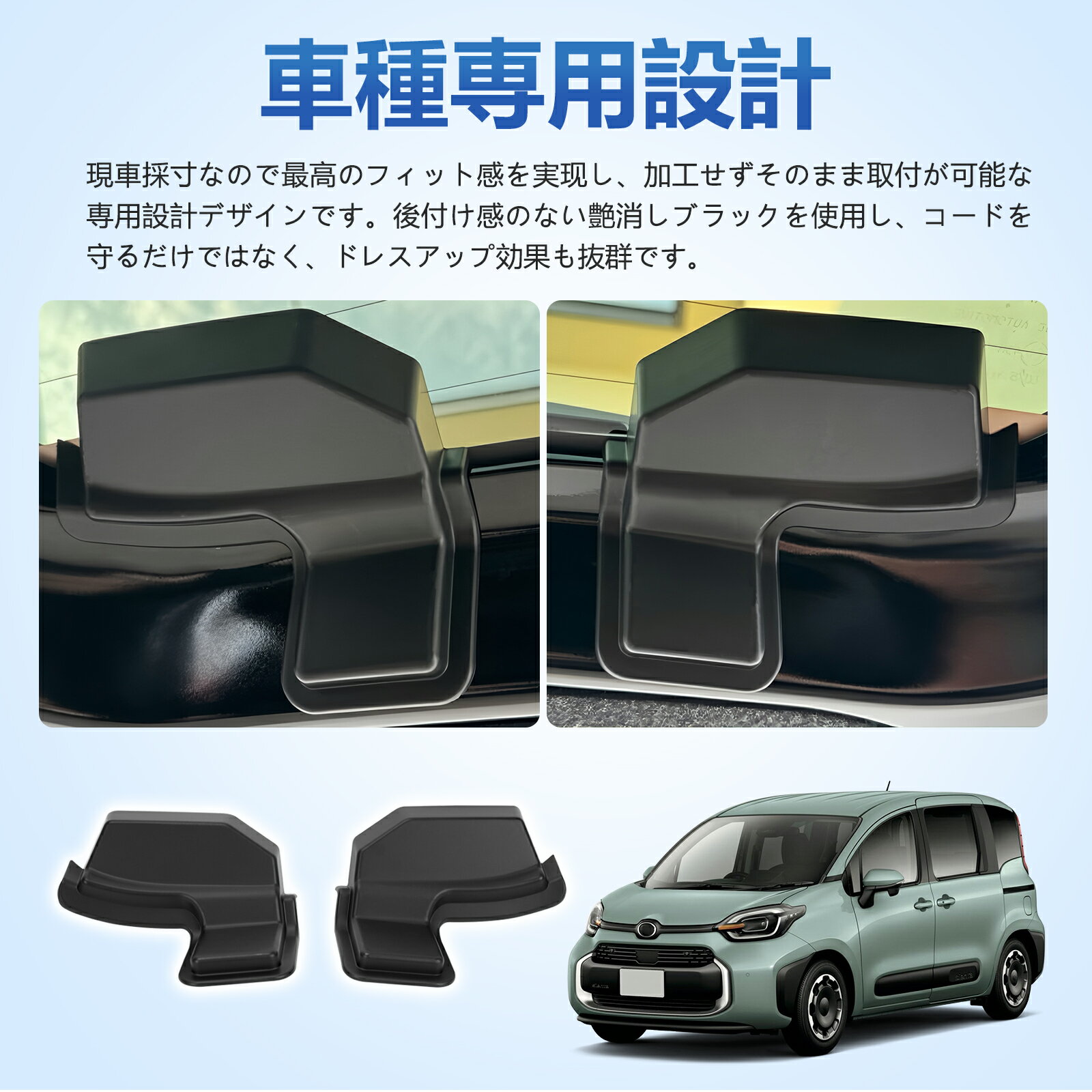 【適合車種】 新型シエンタ 10系 3代目MXPL10G/MXPL15G/MXPC10G型 。2022年8月~現行。セット内容:リアデフォッガーカバー×2P。材質:ABS樹脂。カラー:ブラック。※年式・グレード・オプション等により適合しない場合がございます。形状をご確認いただいた上、お買い求めください。 【車種専用設計】現車採寸なので最高のフィット感を実現し、加工せずそのまま取付が可能な専用設計デザインです。後付け感のない艶消しブラックを使用し、コードを守るだけではなく、ドレスアップ効果も抜群です。 【コードを断線から守る】熱線に干渉しない形状に設計されており、むき出しのコードを隠し、ホコリや傷、衝撃から守り、紫外線や経年劣化による熱線の劣化を防ぎます。 【取付簡単】製品裏面に両面テープが貼られていますので、リアデフォッガーの位置に貼り付けるとすぐに使用できます!初心者でも気軽に取り付けいただける便利なアイテムです。※装着前に必ず仮合わせし、貼り付け位置と向きを確認してください。※車体の取付箇所表面の油分や水分、汚れなどを綺麗に拭き取ってから、貼り合わせてください。 【高品質ABS素材】耐衝撃性、耐久性に優れた高品質のABS樹脂を素材として製作し、高温でも低温でも良好な性能を維持します。また耐腐食性に優れており、劣化を恐れず長く使用できます。 【注意事項】: ・当店の商品は全て国内から配送されます。 ・国内配送の商品は国内でのお買い物と同じく消費税が発生いたします。関税はかかりません。 *色がある場合、モニターの発色の具合によって実際のものと色が異なる場合がある。