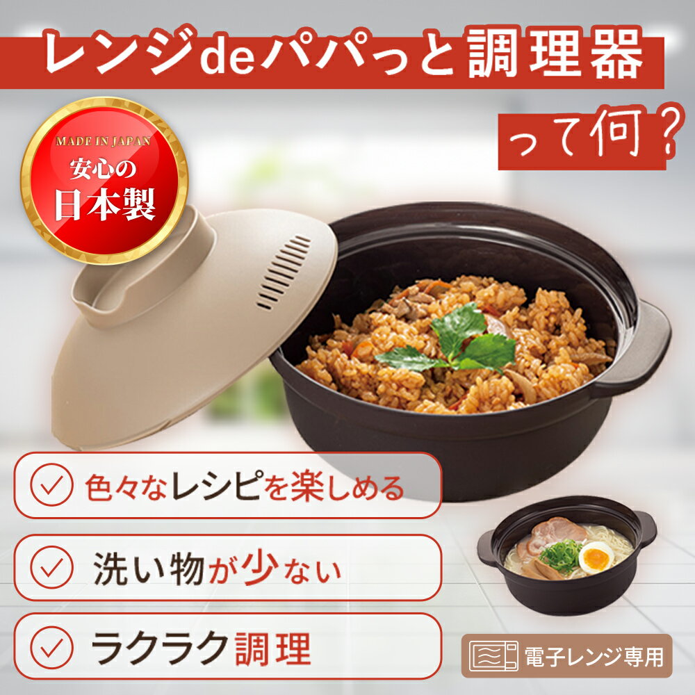 【これ一台でラクラク調理】レンジでチンするだけで簡単調理。一人暮らしや料理が苦手な方も調理を楽しめます◎ 【洗い物が少ない】おしゃれデザインだからそのまま食卓に並べてもOK。洗い物の手間を省けます。 【日本製】安心の日本製。 【優れた機能性】湯切り穴付きでザル不要!パスタも簡単に作れます。フタ部分には箸を置くこともできます。 【いろいろなレシピを楽しめる】鍋、ラーメン、パスタ、雑炊、うどん、炊き込みご飯、アクアパッツアなど、これ一台でいろいろな料理を楽しめます! 【製品情報】Color:ブラウン・ブルー・イエロー・オレンジ・ピンク・ベージュ 仕様:電子レンジ専用、食洗器対応、オーブン・グリル使用不可 材質:ポリプロピレン 生産国:日本