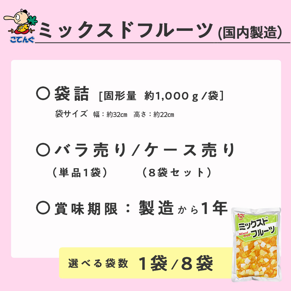 ミックスドフルーツ4種 輸入原料国内製造 袋詰 固形1000g入1袋/8袋 給食 業