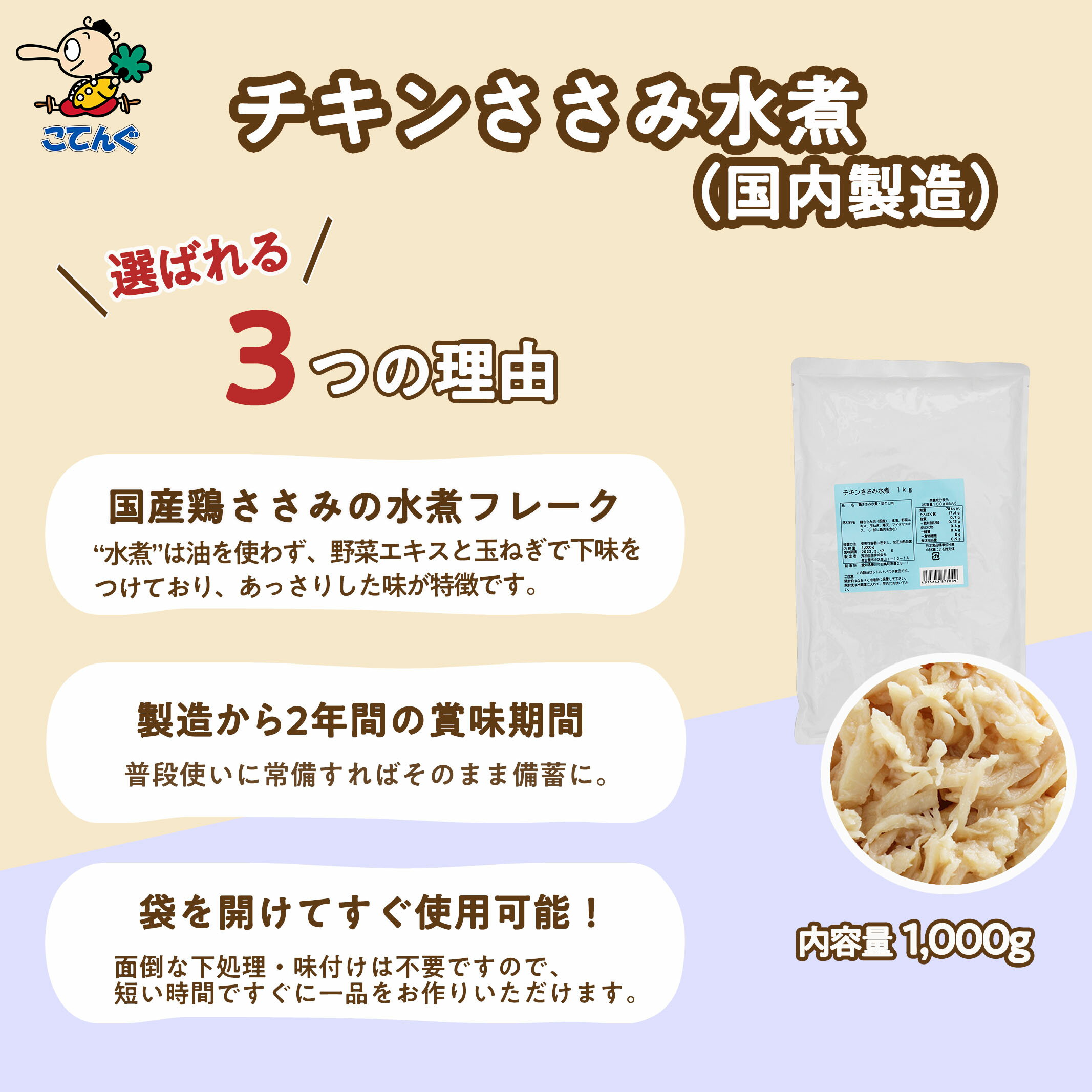 \お得なクーポン配布!11/04 20:00〜11/11 01:59/チキンささみほぐし肉水煮 国産 袋詰 1000g入 1袋/10袋 ささみフレーク サ