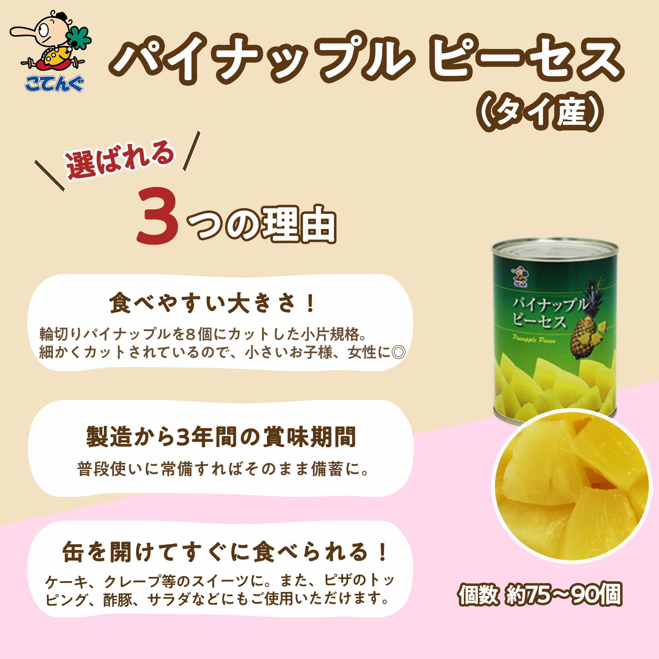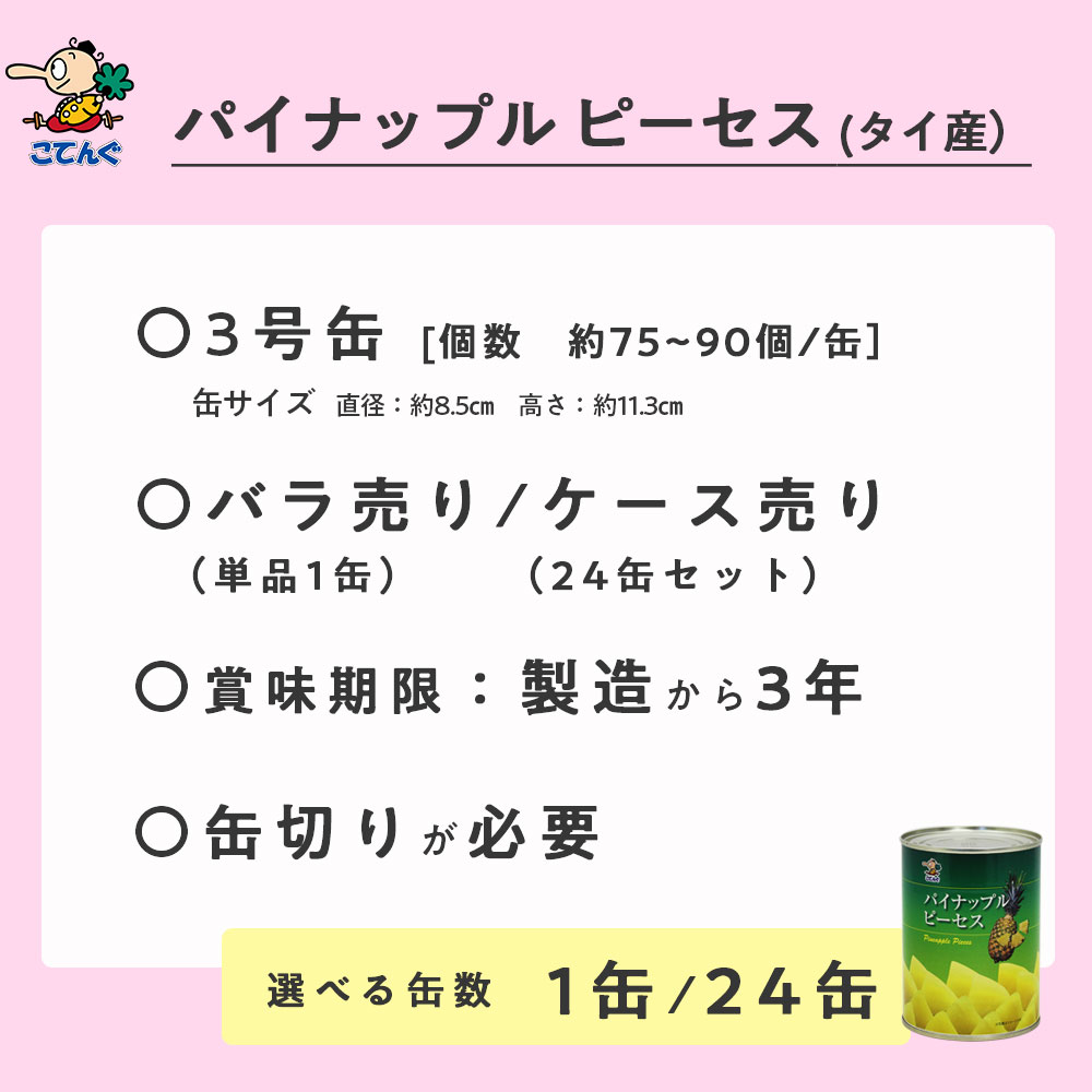 \毎月1日はこてんぐの日!お得なイベント実施中/パイナップル 缶詰 タイ産 ピーセス 3号缶 固形340g入 1缶/24缶 給食 業務