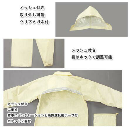 カッパ 合羽 レインコート 雨具 スーパーフィックスーツ 反射テープ付き FIC-8000 男女兼用 中学生 高校生 自転車通学 通勤 通学 べとつき防止 福泉工業 ベージュ S〜3L