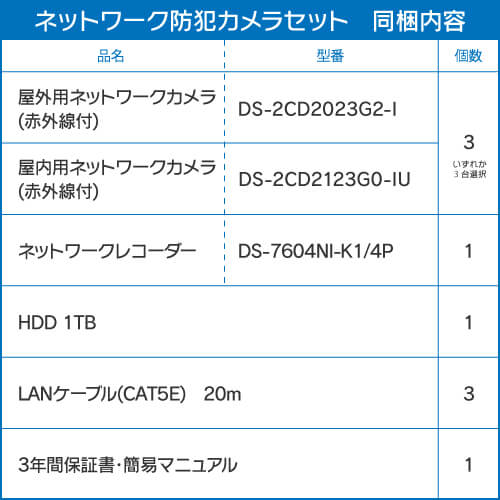 ネットワーク 監視カメラセット ! 固定 ネットワークカメラ 3台 屋外 屋内用 から選択、4ch POE電源機能付き ネットワークレコーダー、ケーブル類付属。HDD1TB付属。 世界のHIKVISION製。【内訳】固定カメラ(屋外用 DS-2CD2023G2-I又は屋内用 DS-2CD2123G0-IU)×3、録画装置(DS-7604NI-K1/4P)×1、ハードディスク 1TB×1、LANケーブル(20m)×3 POE 電源 不要 IPカメラ 屋外 防犯 カメラ 設置 しやすい 防犯 カメラ 価格 防犯 カメラ LAN配線 ネットワーク カメラ 屋外 おすすめ 防犯 カメラ 防犯 カメラ コストコ 防犯 カメラ 防犯 カメラ 値段 監視 カメラ 屋外 防水 防塵 poe カメラ取扱説明書DS-7604NI-K1/4P.pdf 仕様書DS-2CD2023G2-I.pdf 仕様書DS-2CD2123G0-IU.pdf 仕様書DS-7604NI-K1/4P.pdf ●アラーム音の解除.pdf
