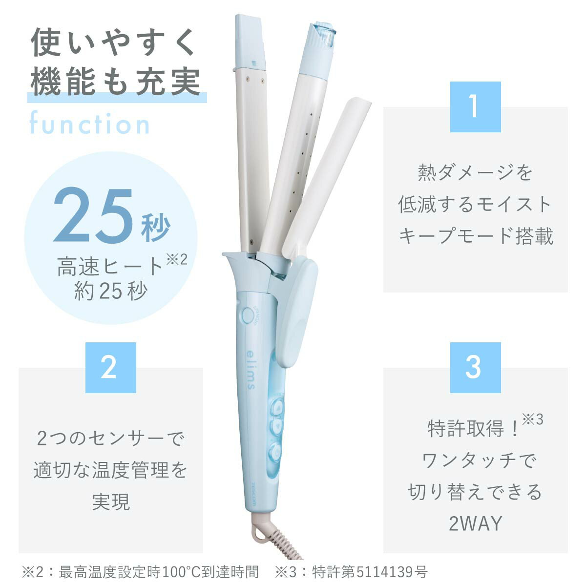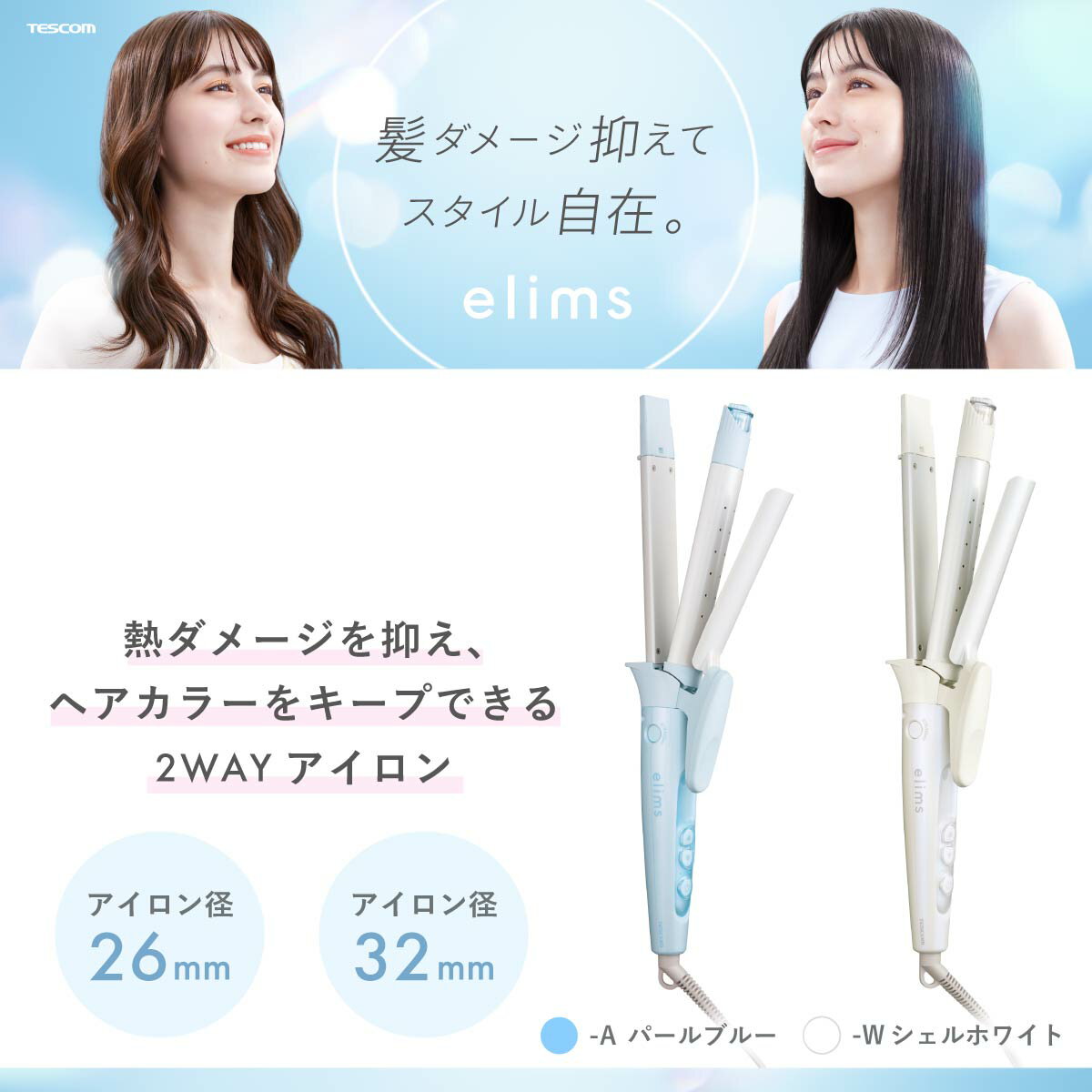 \楽天1位/ ヘアアイロン 2way 32mm 26mm elIms エリムス テスコム 公式店 TW552B / TW553B ヘアーアイロン ストレートアイロン カールアイロン ストレート & カール マイナスイオン 前髪 巻き髪 軽量 旅行 海外対応 送料無料 1年保証