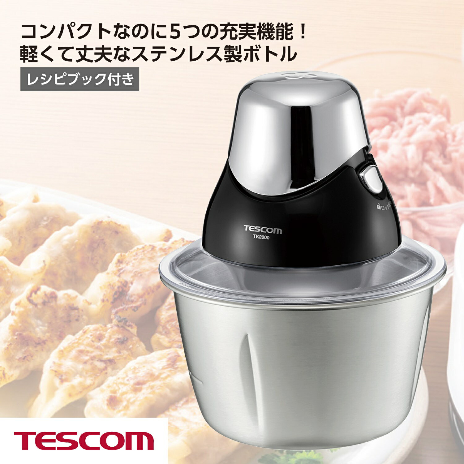 【在庫処分特価6,600円→3,168円】 フードプロセッサー 小型 テスコム 公式店 TK2000 フードカッター カプセルカッター 電動 大根おろし みじん切り器 スムージー コンパクト フードチョッパー プレゼント おしゃれ 送料無料