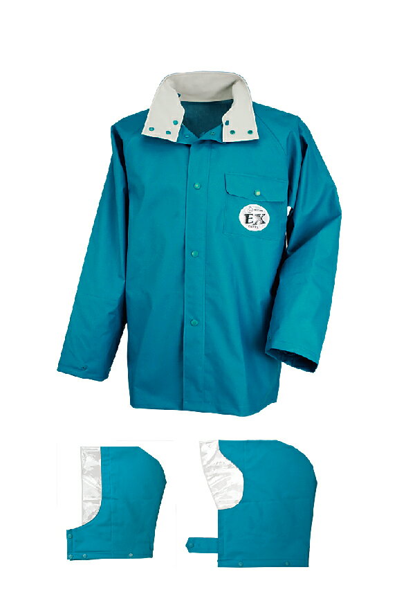 工場現場・林業・農作業など、ハードで厳しい環境での使用を考えて作られた上下別売りのジャケットです。 取り外し可能なフードは通常フードとヘルメット用フードを付属しているので、状況に応じて使い分けが可能です。前面はクリアタイプになっているので良好な視界を保つことができ、安全性も確保。 背面と左胸には反射テープと反射ワッペンを付属し夜間の視認性を高め前後からの安全性を考慮しています。 袖口は手袋をした際も雨が浸入しにくいように、深めの二重袖に仕上げました。内側のゴムと外側のスナップボタンで、フィット感を高めています。 裏面にはベト付きを緩和する前面平織りを採用し高い機能性を実現しました。 <素材> 表面:塩化ビニル100% 裏面:ポリエステル100%(裏面平織繊維貼り)