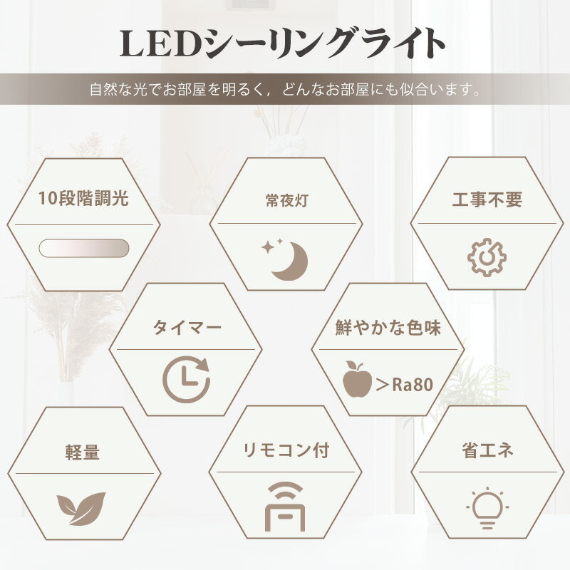 【最安値1520円 3点セット購入で】 シーリングライト LED 6-8畳 リモコン付き 24W 10段階調 電球常夜灯 タイマー機能 高輝度 薄型 丸型 取付簡単 工事不要 コンパクト PSE認証獲得 日本語説明書付 昼白色
