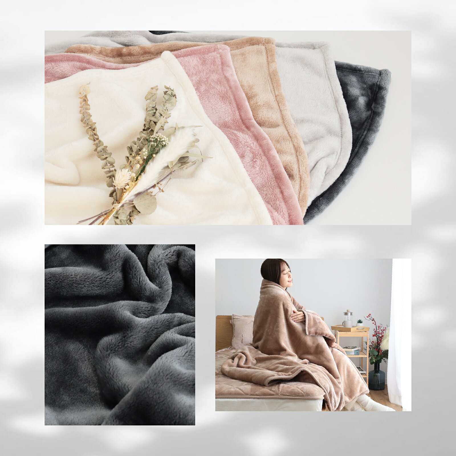 製品仕様 商品名 2024年度版 Curume 肌ざわりが気持ちいい 毛布 タイプ レギュラータイプ(ニューマイヤー毛布) 4層タイプ ※4層タイプは完売いたしました サイズ/寸法 ●レギュラータイプ(ニューマイヤー毛布) シングル:約140×200cm ダブル:約180×200cm ※セミダブル、クイーン、キングは完売いたしました 素材 ●レギュラータイプ(ニューマイヤー毛布) ポリエステル100% 表地:ポリエステル100% 裏地:ポリエステル100% 詰め物:上層/ポリエステル100%・下層/ポリエステル65% レーヨン35% 色 アイボリー ライトグレー モカブラウン スモーキーピンク チャコールグレー 生産国 中国 製造元 帝人アクシア株式会社 商品説明 ずっと包まれていたくなる、 「Curume 肌ざわりが気持ちいい毛布」 Curume 毛布で、 もうワンランク上の包まれる幸せを 【point1.触りごこちの良さ】 通常の3倍の手間をかけて仕上げた肌ざわりの良さ! 【point2.高密度でしっかり保温】 繊維の密度が高いほどあたたかい空気が溜まるため、 密度がぎゅっと詰まったCurumeはあたたかさを逃さない! 【point4.やさしさ設計】 ・冬の不快な”パチッ”を防ぐ(静電気が起きにくい加工を施しています) ・洗濯機で洗えていつでも清潔!手軽に洗えて安心 ※必ず洗濯ネットをご使用ください ご注意事項 ・モニターの発色の具合によって実際のものと色が異なる場合がございます。 また、生地の特徴として毛足の向きにより色の見え方が異なり、表情の見え方をお楽しみいただく商品です。ご了承ください ・お洗濯の際は必ず洗濯ネットをご使用になり、単独洗いください また、製品付属の洗濯表示やご家庭の洗濯機の説明書をご確認の上、お洗濯いただきますようお願いいたします ・素材の特性上ご使用中及び洗濯中の摩擦により毛玉が発生したり、毛羽が抜けることがありますが、ご使用に差し支えありません その他 ■送料について 当商品について北海道、沖縄、離島については別途送料が発生いたします。 ご注文後、スタッフよりご案内を差し上げますのでご了承のほどよろしくお願いいたします。 ■付属品について お届けする商品に説明書などの商品情報に関する付属品はついておりません。 商品詳細は当商品ページをご確認下さい。