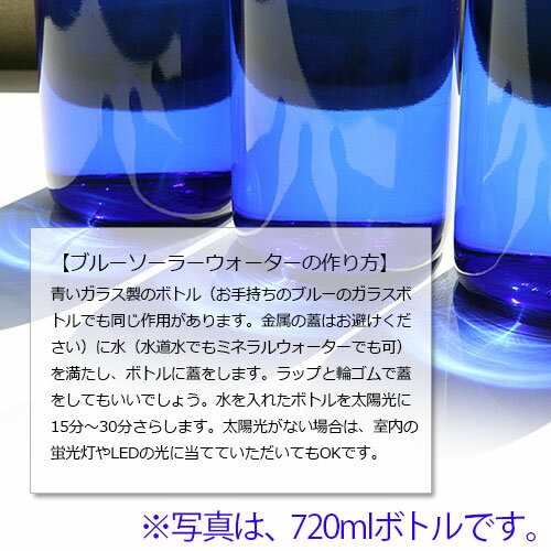 『ブルーボトル』 シリーズ Ceeportブルーボトル(小) Ceeportブルーボトル(大) 商品詳細 数 量 1本入 サ イ ズ 容量:720ml、高さ:約30cm、底幅:約8cm※容量は「720ml」「1800ml」の2種類ございます。ご購入前に必ずサイズをご確認ください。 材 質 本体:ガラス製、キャップ:プラスチック製 備 考 【ブルーソーラー・ウォーターの作り方】 (1)青いガラス製のボトルを準備します。 (2)水をボトルに満たす。このとき使う水は、水道水でもミネラルウォーターでも可。 (3)ボトルに蓋をする。※金属製のキャップは避けてください。もともと金属製のキャップがついていたボトルは、ラップと輪ゴムで蓋をしてもいいでしょう。 (4)水を入れたボトルを太陽光に30分以上さらす。曇りや雨の日も晴天時と同様です。夜間は白熱灯の光でも可(蛍光灯は不可)。 【ブルーソーラー・ウォーターの使い方】 ・そのまま飲用。1日2Lくらい飲むようにしましょう。 (青いボトルに入れてつくったブルーソーラー・ウォーターは、別の容器に移し替えても構いません) ・料理にも使えます。 ・お風呂のお湯に加えたり、化粧水としても利用できます。 ※ブルーソーラーウォーターは生水なので、冷蔵庫で保存し、できるだけ早く使い切ってください。 『Ceeport &KRグッズ』は、SITHホ・オポノポノ®を提供する本部によってアメリカでクリーニングされた商品です。商品そのもののアイデンティティーを大切にする製作者の考えのもと、ご注文完了後のキャンセルおよび返品・交換は承ることができません。ご理解とクリーニングに感謝申し上げます。 広告文責 株式会社 Total health design:0774-72-5889ホ・オポノポノ・Ceeport グッズ 【Ceeportグッズ】 ハワイ伝統のヒーリングメソッドを現代人がいつでもどこでもできるようアレンジした、「ホ・オポノポノ」。「どんな目の前の現実も、100%自分の記憶の現れである」として、その記憶を「クリーニング」するために 「I love you」という言葉を心の中で唱えるなど、さまざまな方法を推奨しています。Ceeportグッズシリーズは、そのクリーニングを手助けしてくれます。なお、Ceeportグッズは、ヒューレン博士によってクリーニングされています。