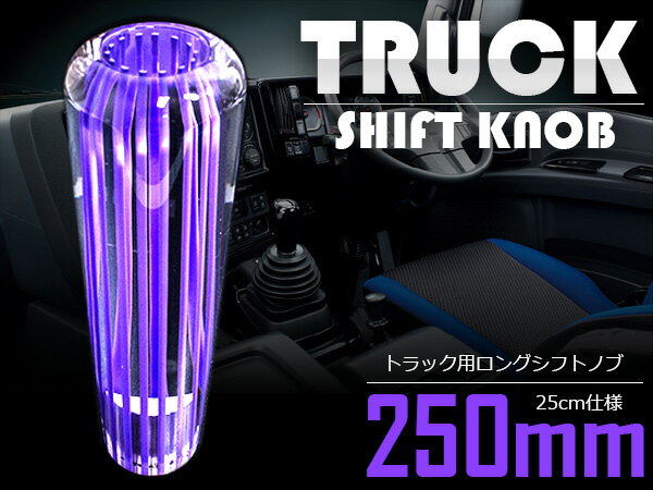 汎用 クリスタル シフトノブ 25cm/250mm トラック用 パープル/紫 縞柄 丸形 【トラック トラック用品 内装 ドレスアップ カスタム ボーダー 丸型】