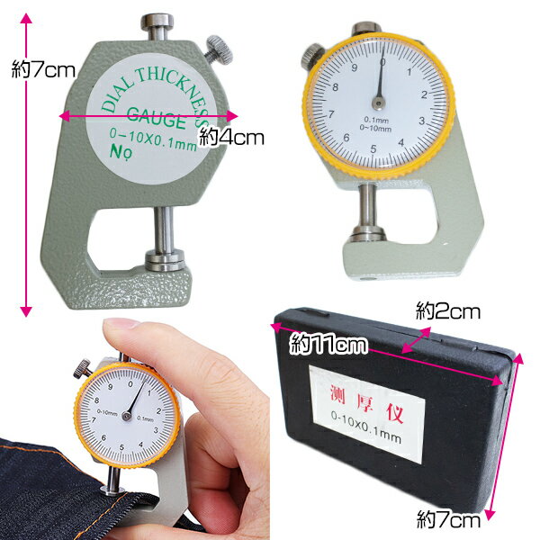 シックネスゲージ 厚み測定 ゲージ アナログ 革厚 金属板 フィルム ワイヤー幅 生地 厚み ダイヤル式 レザークラフト 0.1mm