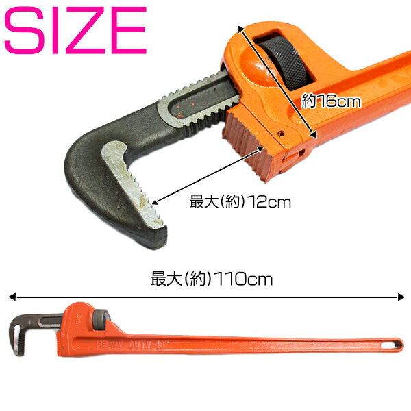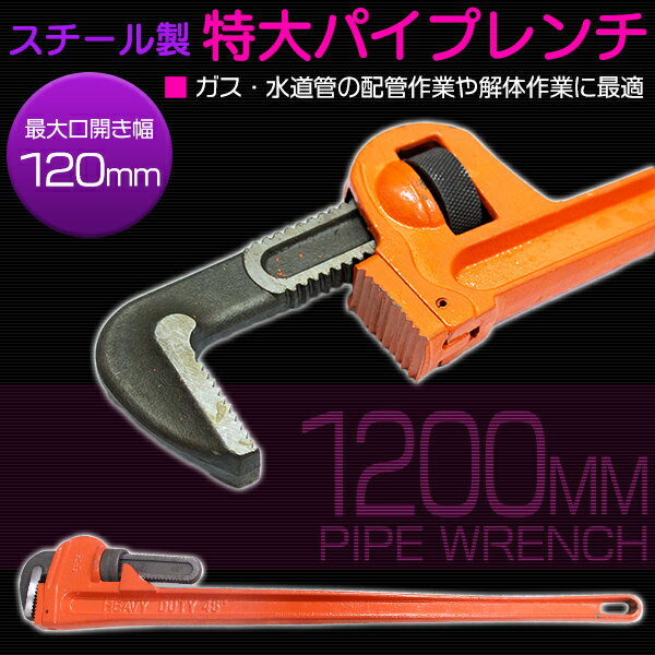 特大 パイプ レンチ 全長 1200mm 開口 135mm トライモ型 配管 鋼管 鉄管 工事 丸 パイプ 水道 ガス 管 締め 工具 48インチ
