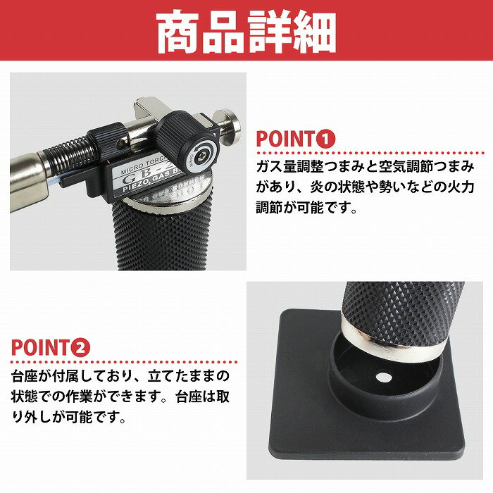 炎温度 1300℃ マイクロトーチ ガスバーナー 溶接トーチ 台座 火力調節 付き DIY アウトドア 火起こし ハンディー トーチ