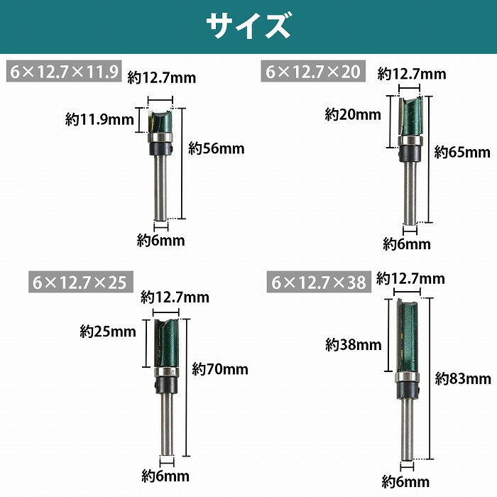 6mm軸 ストレートビット 4本セット 超硬刃 ルータービット トリマービット カッター 木工用 溝彫り 面取り 切削工具 ルータ