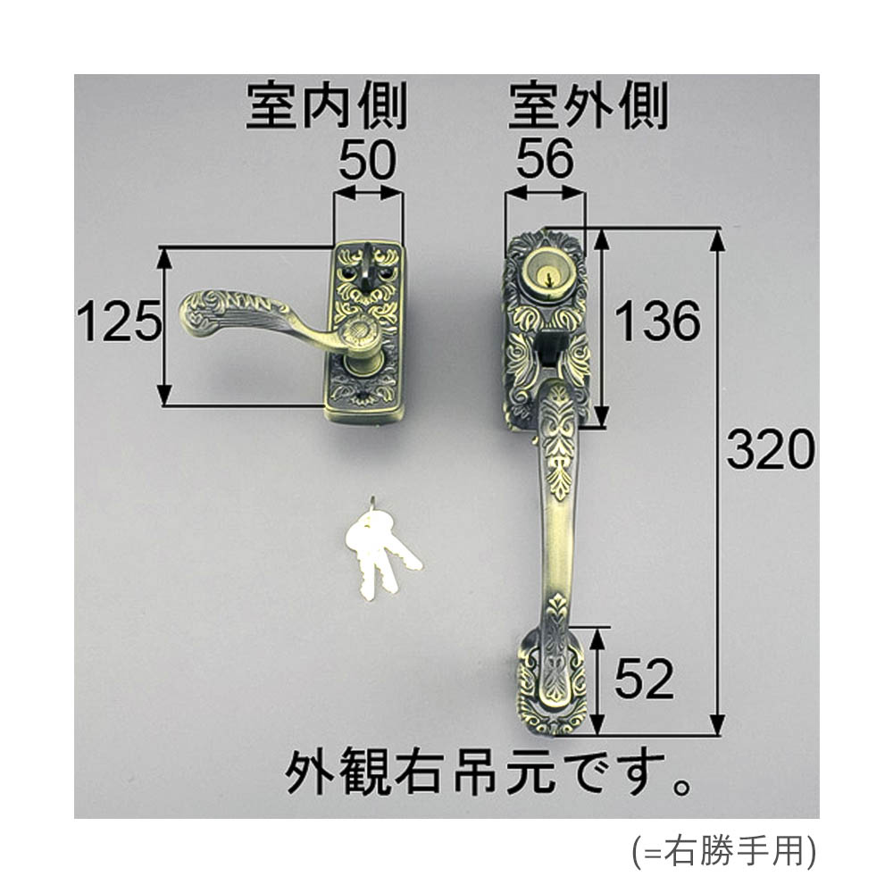 【11/27 01:59迄 全品P10倍】TOSTEM サムラッチハンドル AZWZ739(左) / AZWZ740(右) キー3本付 玄関 把手セット SHOWA シリンダー仕様【CSM】【LIXIL トステム メンテナンス部品】