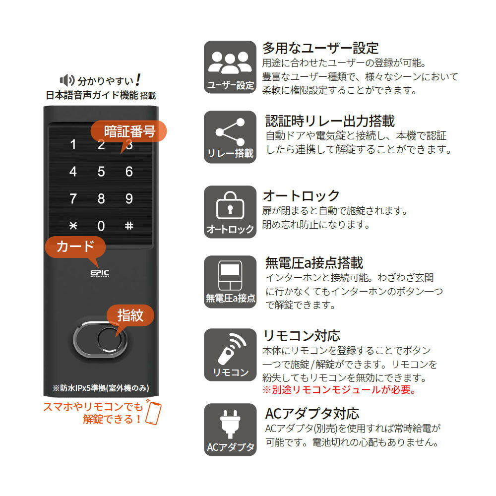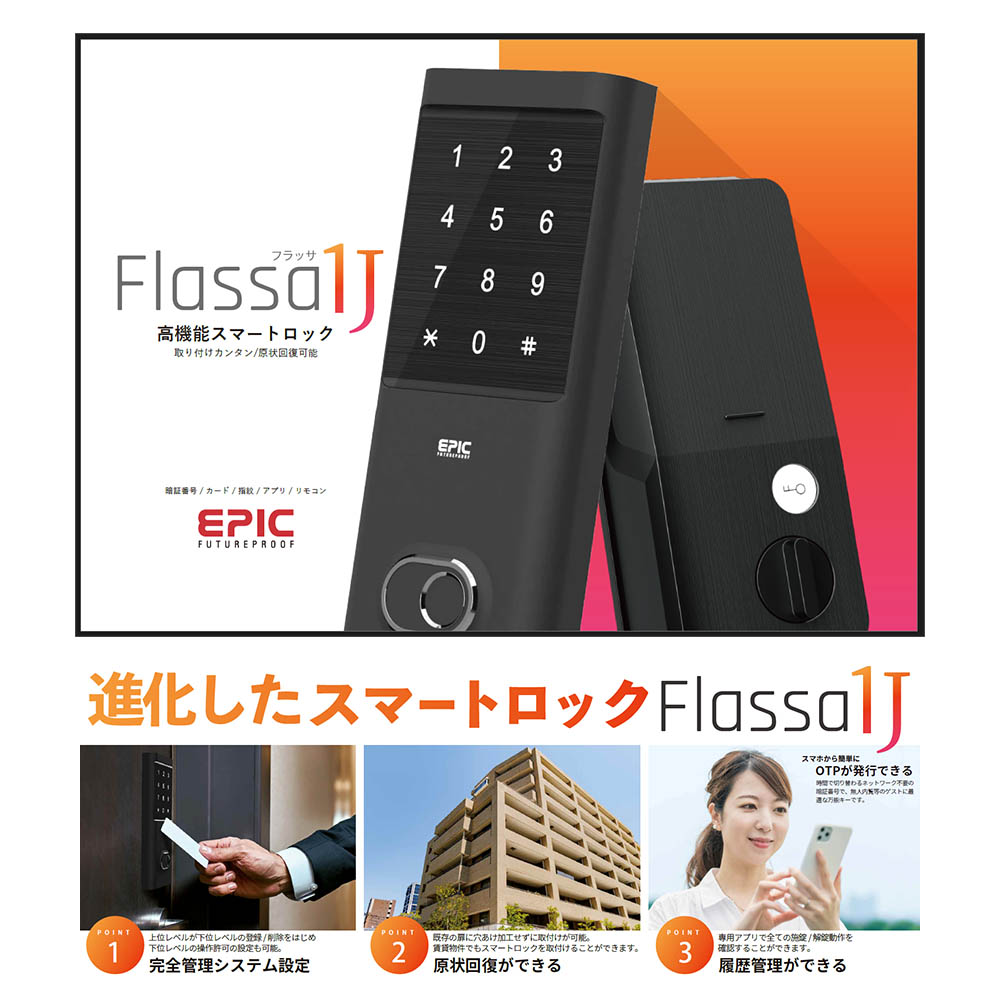 【11/27 01:59迄 全品P10倍】EPIC Flassa 1J 本体セット 暗証番号 指紋認証 ICカード アプリ対応【エピック スマートロック】