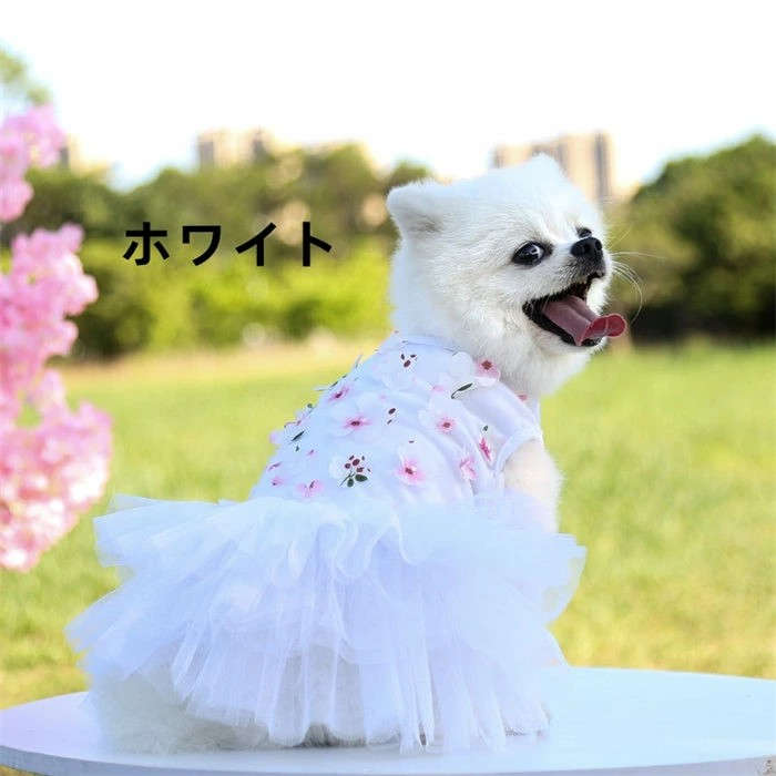 ペット服 ペットウェア 犬服 猫服 ワンピース 花柄 花飾り チュールスカート ドレス ドッグウェア ペットグッズ 猫 ネコ ペット 小型犬 中型犬 かわいい 丸首 おしゃれ 可愛い 柔らかい 春 夏 犬 お散歩 記念撮影 部屋着ペット用品 お出掛け