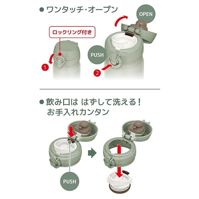※お使いのモニターやディスプレイの環境により、実際のカラーと画像のカラーが多少異なる場合がございます商品管理番号:r4562344390194、r4562344390200、r4562344390156、r4562344390163、r4562344390170、r4562344390187 THERMOS サーモス アウトレット公式 水筒 マグ ワンタッチ・オープン 保冷 保温 丸洗い可能 500ml お出かけ