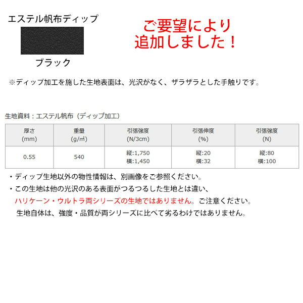 車体に傷をつける加工を施さずに、お写真のようにピッタリとかぶるように仕上げてあります。前部バーをボルトで固定することで、しっかりと取付けできます。 ※※完全防水ではありません。シート前部(取付部)両サイドに若干の隙間があきます。詳細は画像を参照ください。※※ ■ダイハツ ハイゼットデッキバン(アトレーデッキバン) 荷台シート・前部固定バーセット202112モデル ■生地:エステルカラー帆布(ターポセット加工・汚れ防止コート付・光沢あり) ■セット内容:荷台シート 1枚、固定バー(左側用・右側用)2本、ゴムロープ ■梱包サイズ:約 長さ65cm×幅37cm×高さ10cm 【ご注意ください】 このシートを取付けできるのは、下記(1)〜(2)を満たすお車だけです。 (1)前部に固定ボルトが4箇所ある (2)左右にガードフレームがある(後部はガードバーなし) ※2021年11月以前のモデルには対応しておりません。 <本シート取付可能なお車の販売年月> ダイハツ ハイゼットデッキバン:2021年12月以降のお車 ダイハツ アトレーデッキバン:2021年12月以降のお車 (適合型式:型式末尾5桁がS710W / S700W 車検証の型式欄をご確認ください) ※この商品は沖縄・離島には配送ができません。誤ってご注文された場合店舗でキャンセルいたします。 ※受注生産品のため、返品はお受けできない商品となっております。 ※本仕様は、予告なく変更することがあります。 修理も対応します。(有料) ※お願い※スムーズな配送の為届け先が企業の場合、企業名・屋号を入力してください --+ デッキバン荷台シート・固定バーセット2021 商品一覧 +-- エステルカラー帆布(全24色)シート 迷彩柄シート --+ 関連商品 +-- ペタックス(トラックシート補修)(14cm巾×25m) ペタックス(トラックシート補修)(14cm巾×1m単位カット売り)エステルカラー帆布(全24色以上) 長期耐用のエステル帆布製、 全24色以上の豊富なカラーバリエーション! すぐれた耐久性、防水性をもつ高性能ファッショナブル素材です。 ※旧仕様のシートです。こちらの商品ページのシートとは仕様が異なります。 出荷区分mcan