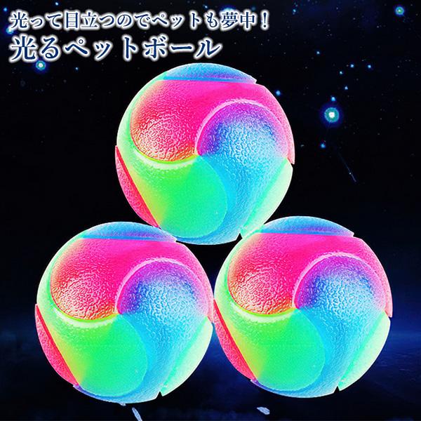 3個セット ペット おもちゃ 弾性ボール 光るボール 噛むおもちゃ 犬 猫 夜間 運動不足 発光 (管理S) 【SK31258】