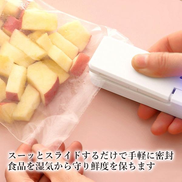 SPUエントリー +5と0のつく日はさらにお買得! ▼▼▼▼エントリーはこちら▼▼▼▼ ▲▲▲▲エントリーはこちら▲▲▲▲ 【商品説明】 スーッとスライドするだけで手軽に密封!食品を湿気から守り、鮮度を保つ! 開封したナイロン袋を簡単に密封できます。 底部にはマグネット付きで冷蔵庫に付けることが出来ます。 【商品仕様】 カラー ホワイト 電源 USB給電 充電時間 約2時間 使用可能回数 約100回 ※商品改良の為、デザインが異なる場合があります。 ※お使いの端末により、実際のカラーと異なって見える場合がございますのでご了承ください。 当店は他の販売サイトとの併売品があります。 ご注文が集中した時、システムのタイムラグにより在庫切れとなる場合があります。 その場合はご注文確定後であってもキャンセルさせて頂きますのでご了承の上ご注文下さい。