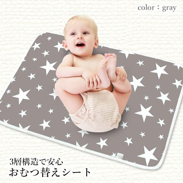 おむつ替えシート おむつ替えパッド おむつ替えマット スター グレー ベビーマット オムツ替えマット 丸洗いOK (管理S) 送料無料 【SK19793】