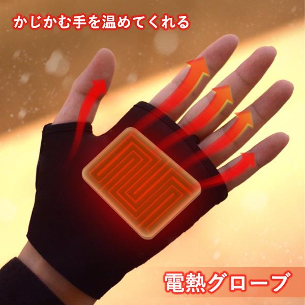 温熱手袋 電熱グローブ ブラック 指なし加熱手袋 指なしホットグローブ ヒーター内蔵 3段階温度調節 USB充電 (管理S) 送料無料 【SK19911】