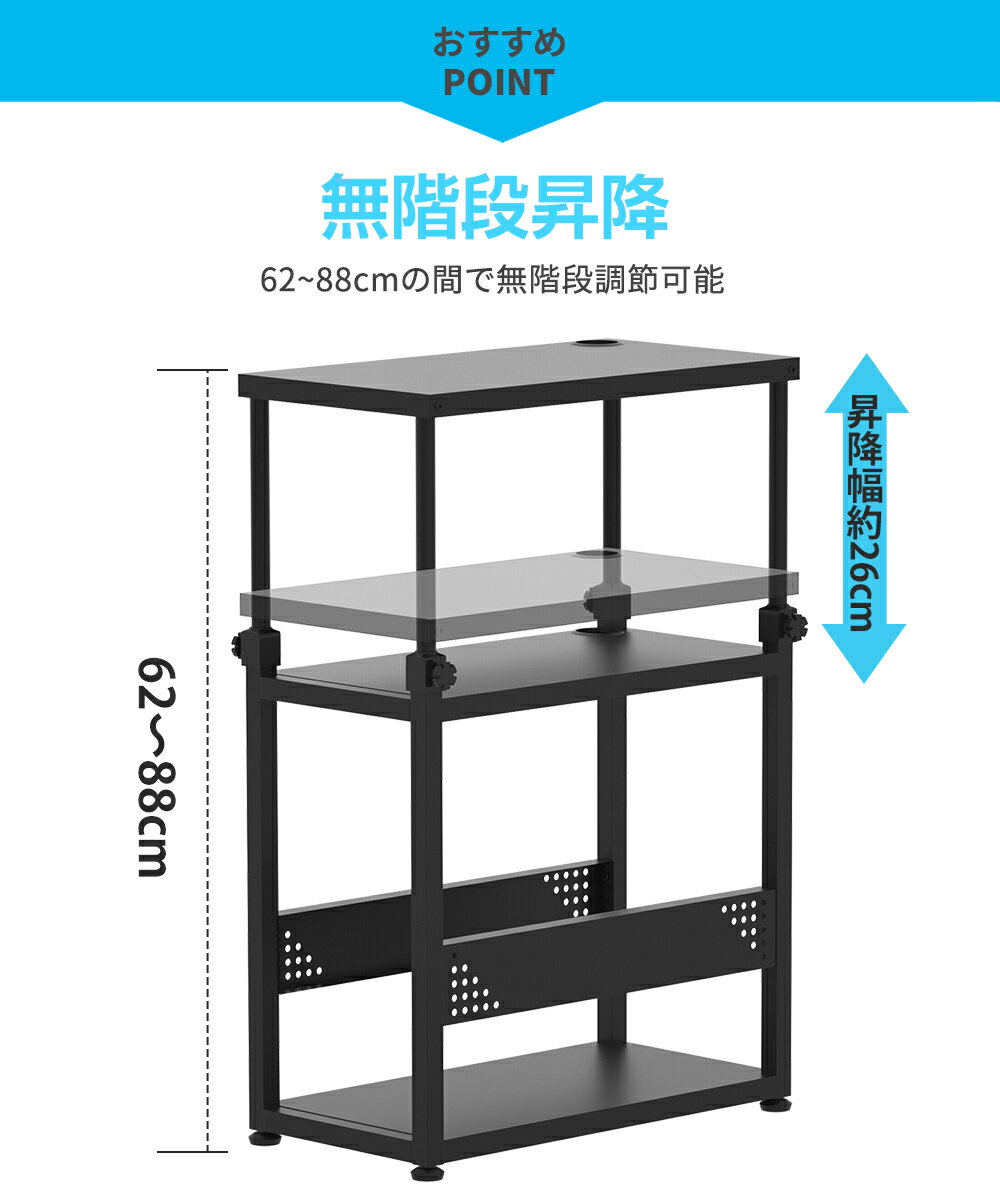 [12月4日20時〜ポイント5倍+最大2000円クーポン]パソコンワゴン プリンター台 昇降式 デスクワゴン pcワゴン 金属製 収納棚 サイドデスク PC本体収納 高さ調節可能