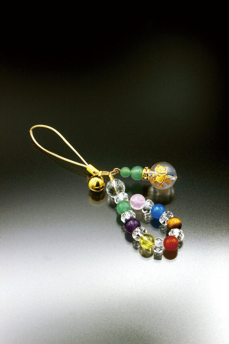 <材質> 白水晶:12mm珠×1個(カエル刻印)、8mm(カット)×1個、6x3mm(カット)×7個 黄水晶・アメジスト・虎目石・赤メノウ・青メノウ・ローズクォーツ:6mm珠各1個 アベンチュリン:6mm珠×2個、4mm珠×2個 ロンデル:6x3mm×1個(真鍮・ラインストーン) 鈴:1個(スチール) 付属品:専用巾着袋、強運・かえるカード□現品サイズ:全長:約 9 cm□個装サイズ:約 13.8 × 8.5 × 1.5 cm□現品重量:約 8 g □個装重量:約 13 g□個装状態: PP袋□生産国:日本★かわいいカエルのお守りストラップ! *「無事に帰る」「お金が返る」など縁起もので知られるカエルのストラップ。 「交通安全」「家内安全」「旅行安全」のおまもりにも・・・・ 白水晶:願望成就・浄化 黄水晶:金財運・活力向上 アメジスト:癒し・邪気祓い 虎目石:成功・勝負運 赤メノウ:健康・長寿 青メノウ:家庭円満・鎮静 ローズクォーツ:恋愛・愛情 アベンチュリン:ストレス緩和