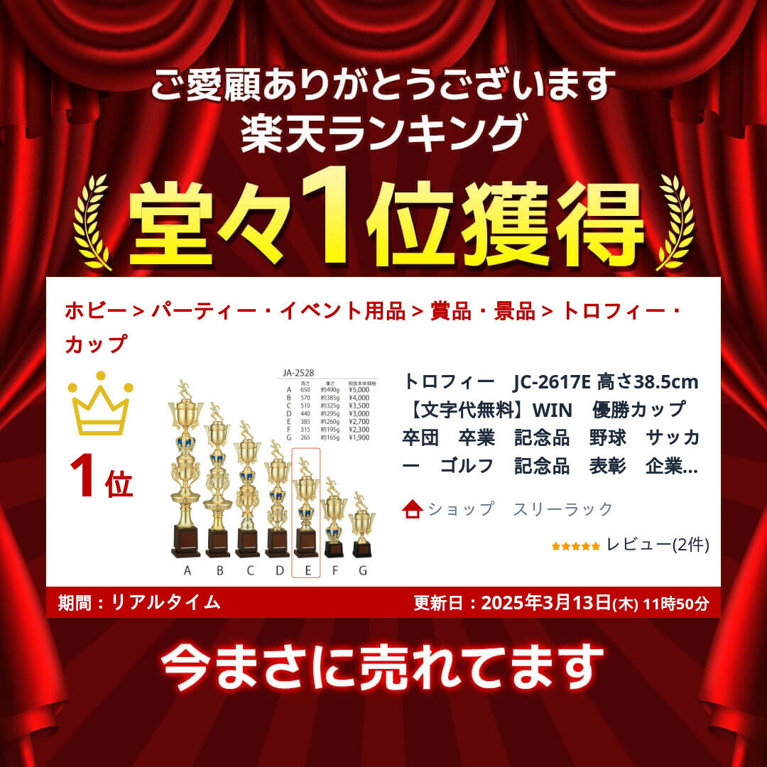 ★楽天1位★ トロフィー JC-2617E 高さ38.5cm【文字代無料】WIN 優勝カップ 卒団 卒業 記念品 野球 サッカー ゴルフ 記念品 表彰 企業 社員 JB-2528E