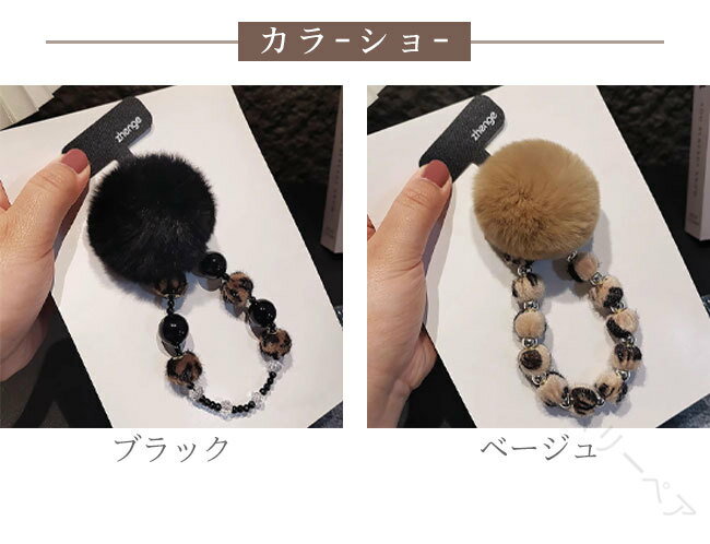 スマホストラップ ハンドストラップ スマホショルダー 携帯ストラップ ボンボン ふわふわ ヒョウ柄 ストラップホルダー 落下防止 装着簡単 手首用 挟むだけ 丈夫 軽量 Phone android 全機種対応 カラバリ豊富 便利でおしゃれなデザイン