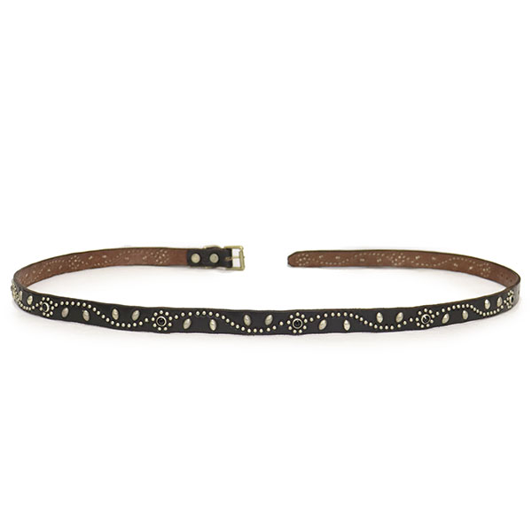 HTCベルトではSuper Narrowと呼ばれる一番幅の細いモデルで0.75inch幅です。エンドが長くデザインされているので、トップスの裾から覗かせることができます。 ベルトの幅:約19mm SIZE:32インチ81cm前後(約78〜86cm) 34インチ86cm前後(約83〜91cm) 36インチ91cm前後(約88〜96cm) 38インチ96cm前後(約93〜101cm) 穴の間隔:約1.2cm 最長の穴から剣先までの長さ:約26cm ※すべておおよその数値です。商品により若干の個体差がございますので予めご了承くださいませ。 ※革製品の性質上、衣服に色移りする場合があります。天然の革を使用しております。元々のスジ、キズ、色の違いや革の表情は一点一点異なります。 入荷時期によりマイナーチェンジの可能性がございます。予めご了承下さいませ。HTC(Hollywood Trading Company)正規取扱店メーカー希望小売価格はメーカーサイトに基づいて掲載していますHTC(Hollywood Trading Company) Brand History 1930〜50年代に生産されていたスタッズベルト。今となっては年間数十本くらいでしか市場で出回らない希少なアイテム。 1994年,独立後にオーナーである ZIP STEVENSON はデニムに最も似合うベルト、スタッズベルトに全米を巡るバイイングにより出会った。でも、サイズや量、程度など顧客の需要にはとても応えられるほど手に入れられるものではなかった。そこで彼は当時使われていた工具、ジュエリーをもとに打ち込み始めて1年、彼の納得のいく、70年間の月日を忘れさせられる手作り感のあるベルトに仕上げた。これがZIPとベルトのスタートである。 それから5年後の2000年より、HOLLYWOOD TRADING COMPANY (HTC)として、世界各国に愛されるベルトブランドとして現在に至る。全米を見渡しても数少ない MADE IN USA をHTCは誇りとし、変わることのない手作り感をこの先も続けていく。