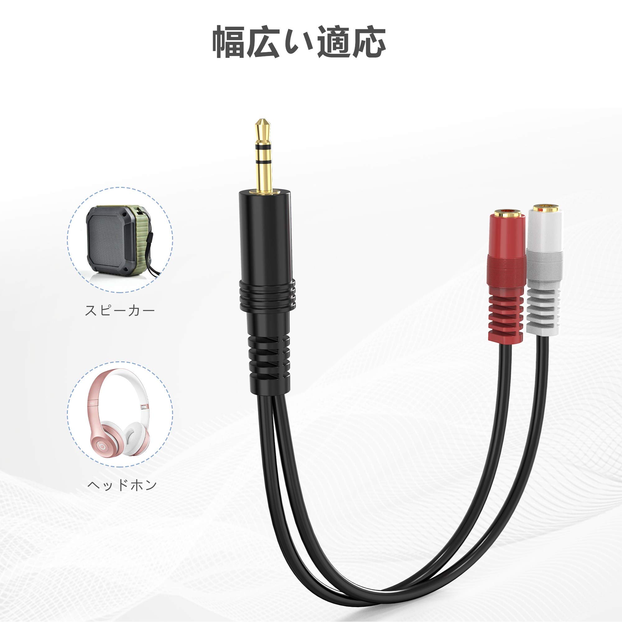 商品情報商品の説明3.5mmステレオミニプラグオス-2x3.5mmモノラルミニプラグメス変換ケーブルです。ステレオミニからのステレオ信号をモノラルミニのLRに変換することが可能です。 金メッキコネクタを採用して、信号ロスを最小限に減少して、高品質音声を再生できます。 スピーカー、ヘッドホンなどに対応します。 長さ:15cm ご購入日から12か月を提供いたします。万が一、問題がございましたら、ご連絡を頂けると迅速に対応致します。お客様にご満足頂けるよう精一杯頑張ります。主な仕様 3.5mmステレオミニプラグオス-2x3.5mmモノラルミニプラグメス変換ケーブルです。ステレオミニからのステレオ信号をモノラルミニのLRに変換することが可能です。br金メッキコネクタを採用して、信号ロスを最小限に減少して、高品質音声を再生できます。brスピーカー、ヘッドホンなどに対応します。br長さ:15cmbrご購入日から12か月を提供いたします。万が一、問題がございましたら、ご連絡を頂けると迅速に対応致します。お客様にご満足頂けるよう精一杯頑張ります。