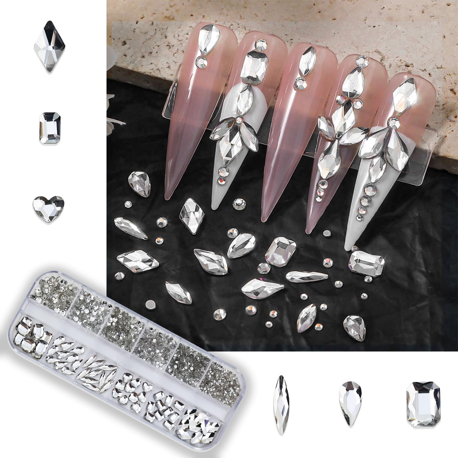 YFFSFDC ネイルパーツ ラインストーン ネイル ストーン ネイルアートパーツ 立体 大容量セット 丸 長方形 ハート ひし形 水滴形 DIYネイル