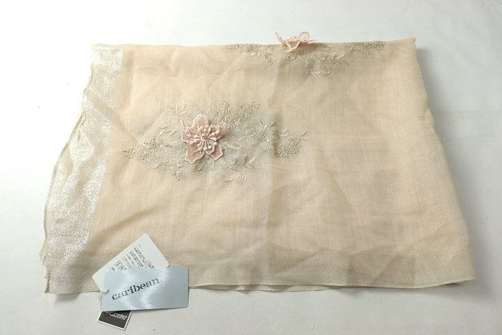 カリビーン ショール ストール ウール シルク混 花 刺繍 ブランド レディース ベージュ caribean 【中古】
