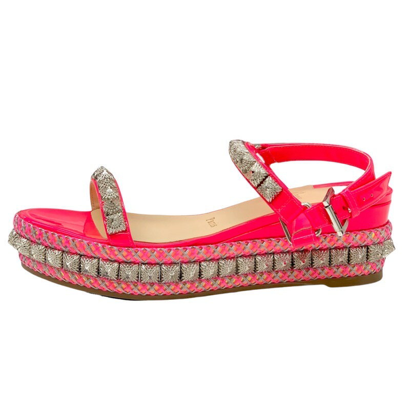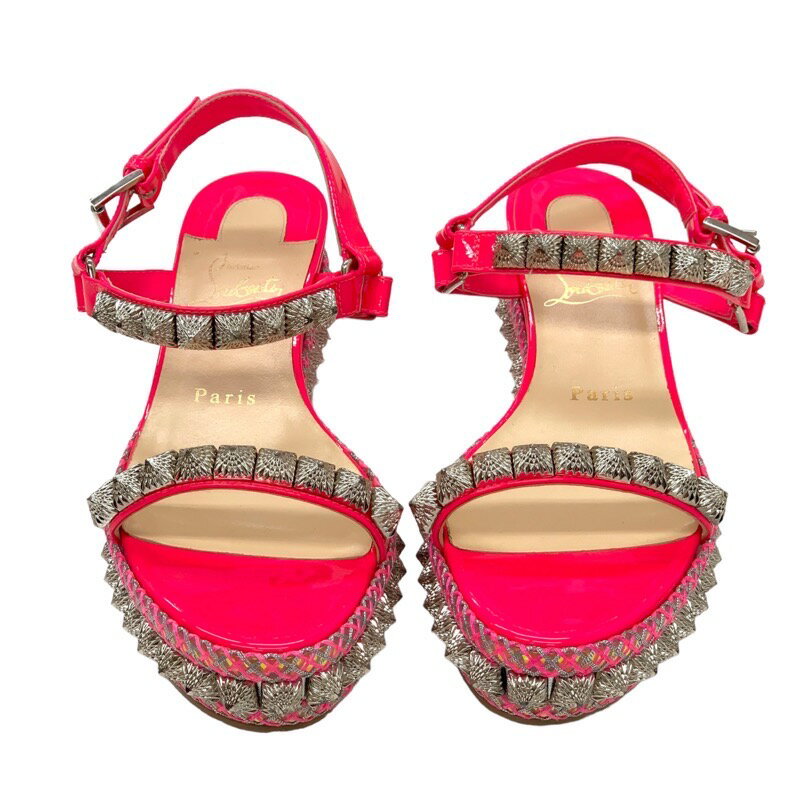 クリスチャンルブタン Christian Louboutin ピラリヤド サンダル 靴 シューズ パテント ピンク シルバー ウェッジソール スタッズ