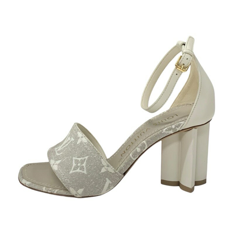 ルイヴィトン LOUIS VUITTON シルエットライン モノグラム サンダル 靴 シューズ キャンバス レザー ライトグレー ホワイト アンクルストラップ