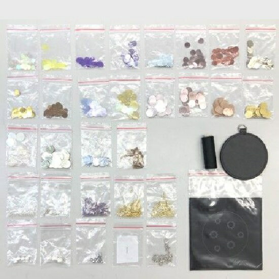 初級★☆☆ プリントした図案に沿って、トップホールスパンコルを重ねて作る花びらと、長い竹ビーズを使った花芯で立体感のある華やかな刺繍をします。 刺繍した後、ミラーチャームパーツに貼りつけて仕上げます。 <キット内容> ・図案プリント生地 ・ミラーチャーム ・テキスト ・材料(針、糸も含まれます) ・解説動画 ※視聴方法はキットに同封させていただきます。 <完成サイズ(約cm)> 直径8 チェーンの長さ17 ※生産時期により、材料や生地の色、サイズ等が画像と多少異なる場合がございます。予めご了承ください。 ※商品写真は実物に近い色を心がけておりますが、お使いのデバイス、モニター設定、お部屋の照明等により実際の商品と色味が異なる場合がございます。 ※商品は配送の依頼を受けてから土、日、祝日除く4営業日以内に発送いたします。 ※他講座および販売促進活動に準ずる行為に、当該テキストを使用することはおやめください。 メタッリックフラワーのミラーチャームキット 解説動画付き
